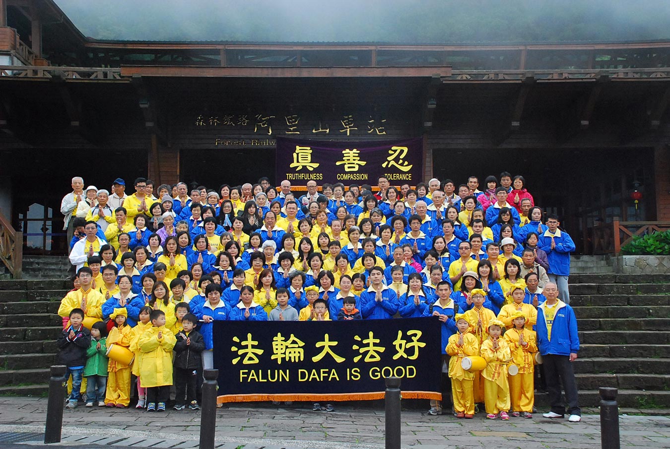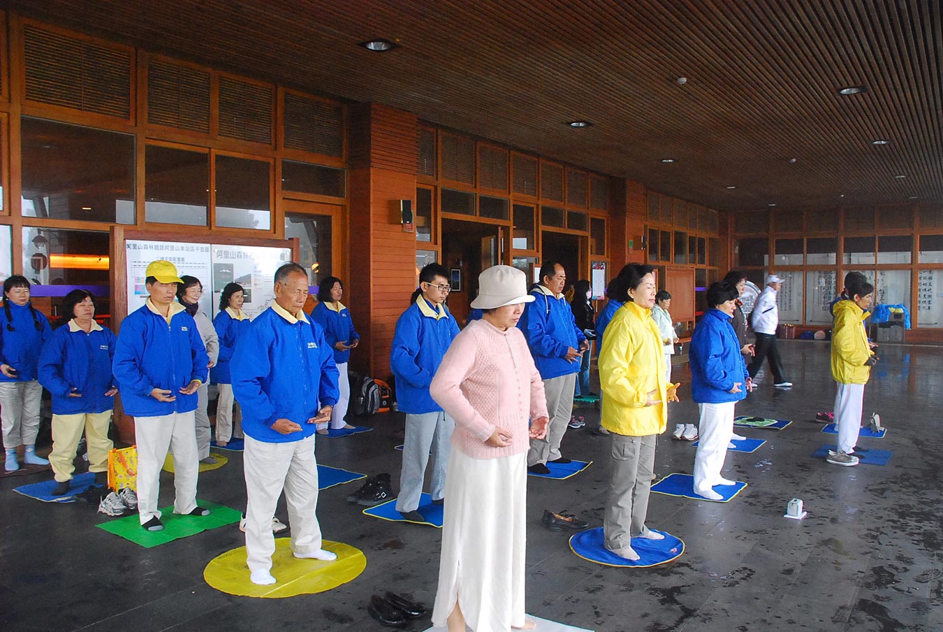![]() 法轮功学员在阿里山火车站前炼功 |
