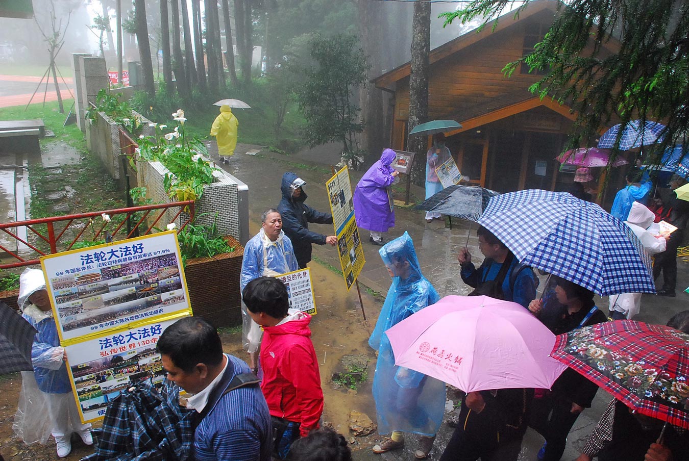 ![]() 法轮功学员冒雨在阿里山向大陆游客讲真相 |
