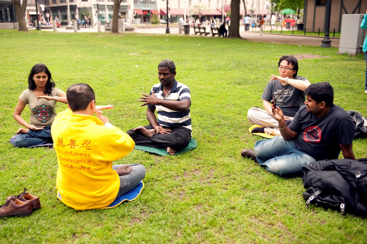 活动期间,有许多人要求学功。印度商人Mugundhan和两位友人静静观看学员炼功后,主动过来进一步了解情况并学功。他表示在波士顿停留的一个月期间,将继续到波士顿公园学习法轮功,希望也能够走入修炼的行列。