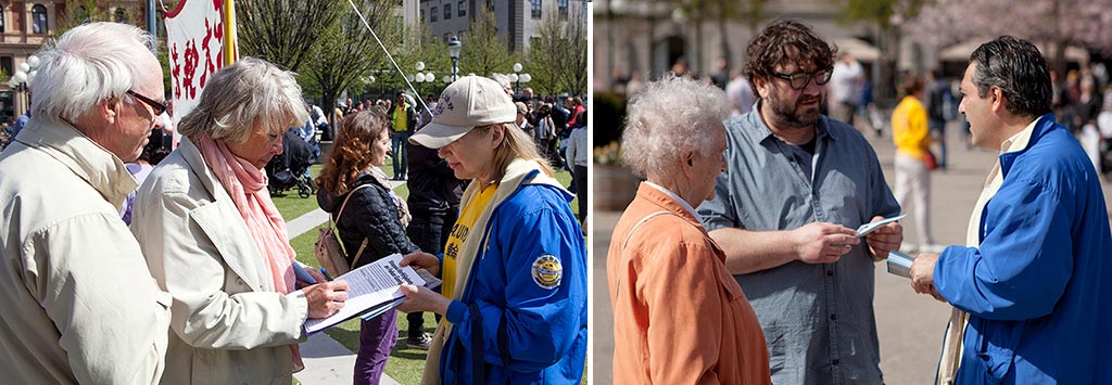 ![]() 瑞典民众纷纷签名支持反迫害 |