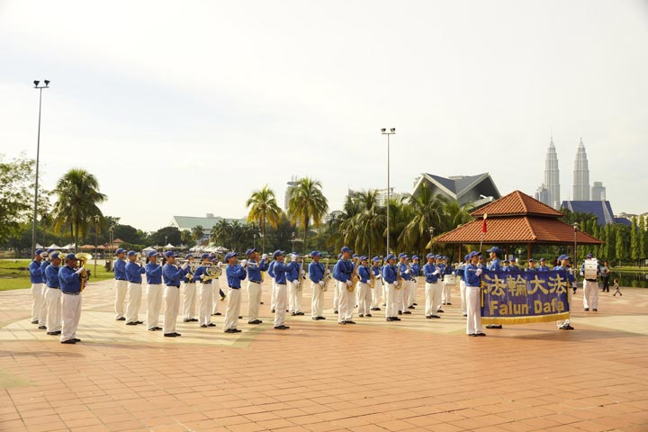 【明慧网二零一三年五月十四日】二零一三年五月十二日,马来西亚吉隆坡和雪兰莪区法轮功学员来到吉隆坡著名旅游景点——蒂蒂旺莎湖滨公园(Titiwangsa Lake Garden),举行集体炼功、真善忍画展、反迫害征签,并以天国乐团和腰鼓队演奏,向伟大师尊祝贺六十二岁华诞,共同欢庆“五·一三”世界法轮大法日,庆祝法轮大法洪传世界二十一周年,从中让许多民众进一步的了解了法轮功。