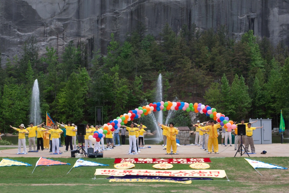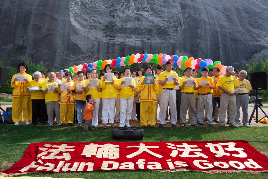 十一日下午,亚特兰大法轮大法学员在石头山举行了庆祝活动。学员们聚集在石头山公园美国内战雕像前的大草坪上以集体炼功、集体诗歌朗颂,合唱表演等形式举行庆祝。打坐时,本是阳光明媚的天气却突然下起了一阵雨。但学员们纹丝不动,很快天又骤然放晴。学员们的讲真相、诗歌朗颂以及合唱表演,让过往的美国民众被深深震撼,并要求要了解更多关于法轮功的讯息。许多民众在了解真相后主动要开始学法炼功,希望得到帮助与指导。