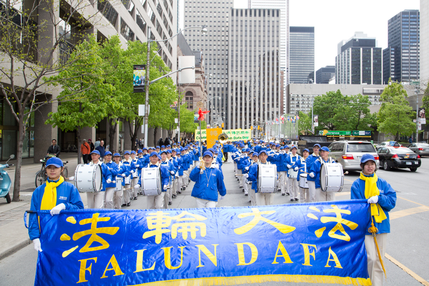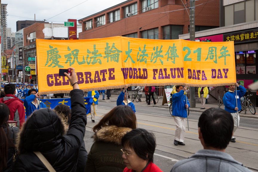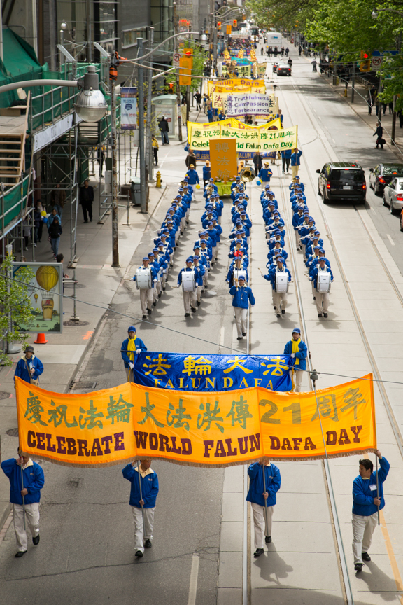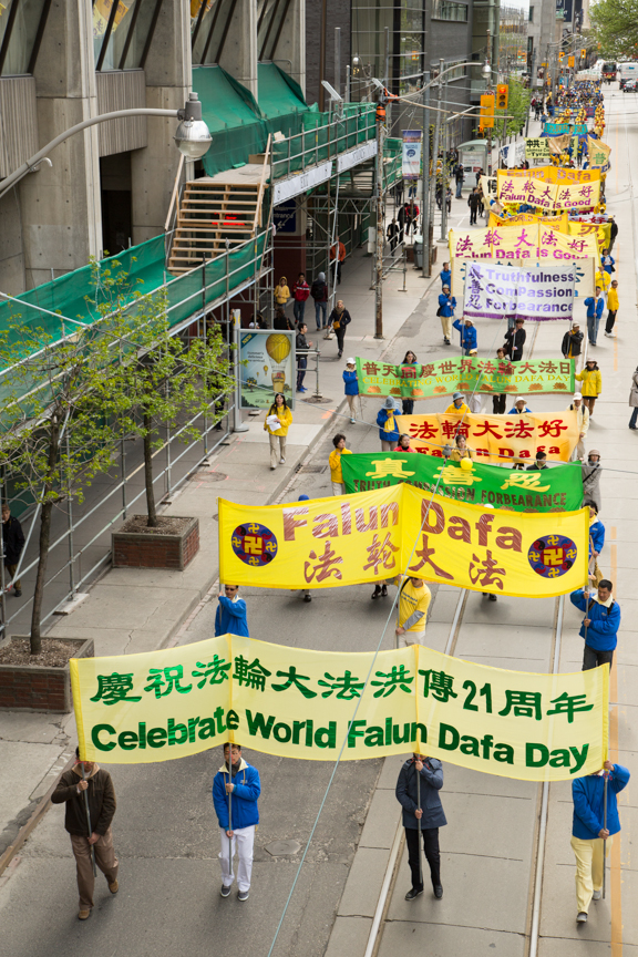 ![]() 多伦多法轮功学员及各界人士在多伦多市区游行,庆祝法轮大法洪传二十一周年。 |