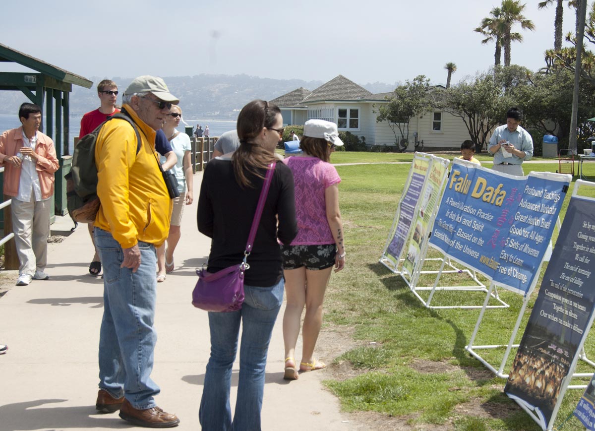 ![]() 加州圣地亚哥法轮大法学员在拉荷亚海滩风景点 |