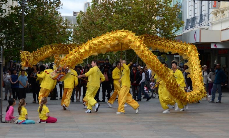 当天的庆祝活动还包括了舞龙等表演,受到民众欢迎。