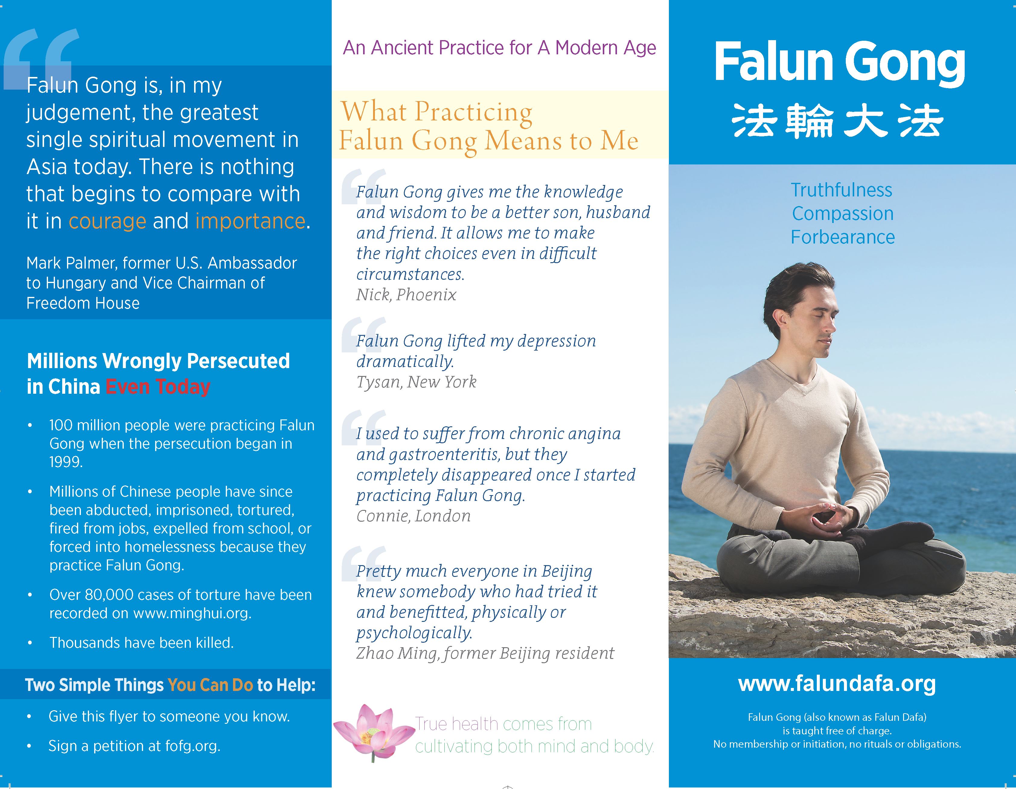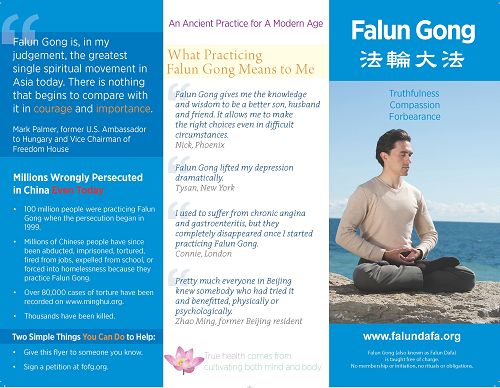 【明慧网二零一三年五月十六日】法轮大法网站制作了新的法轮功英文传单(三折,全彩):