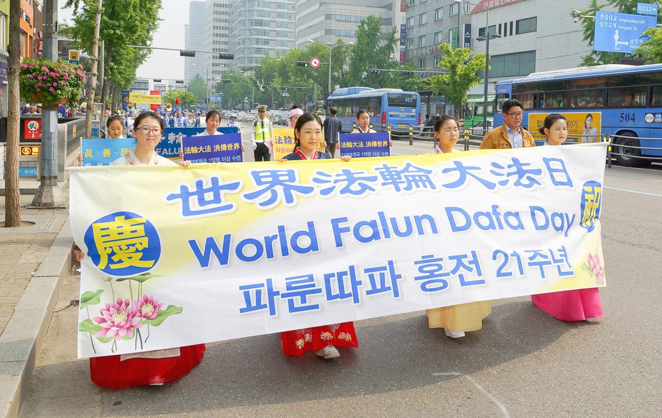 ![]() 法轮功学员在首尔市中心举行庆祝游行 |