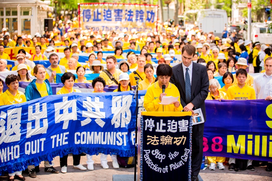 ![]() 反对活摘器官医师协会的发言人戴蒙.诺托医生在集会上发言 |