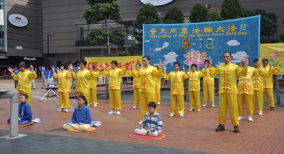 ![]() 新西兰法轮功学员展示功法 |