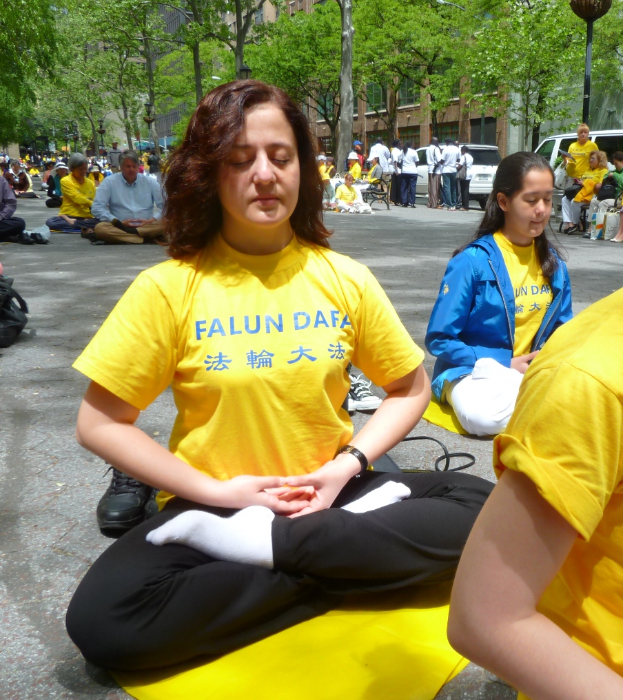 土耳其学员艾奴•戴米尔坎(Aynur Demirkan)修炼十三年了,她曾经身体虚弱,有很多疾病,特别是在生孩子后得了产后风,还有多年的胃病,膝盖由于小的时候摔伤,只要走路多一些就会很痛。自从修炼大法后,过去的这些疾病都好了。戴米尔坎感慨自己很幸运能够修炼法轮大法。如今来到纽约和这么多的法轮功学员一起炼功,她特别高兴,真希望能够让更多人知道法轮大法好。她也想让这里的人能够了解到,在遥远的土耳其也有人修炼法轮功,法轮大法洪传世界各个角落,各族裔的人们都受益。