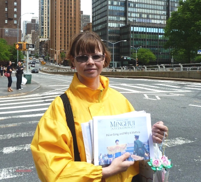 俄罗斯圣彼得堡学员奈丽(Neli Li)是一位有二十多年工作经验的兽医,二零零二年开始修炼大法,这是她第三次参加纽约法会,感到很高兴。奈丽说:我曾经很长时间在寻找修炼的方式,学习过其它种类气功,我的一位气功老师向我介绍了法轮功。我开始了解这个功法,我觉得我和大法很有缘份。我自修炼大法以后不再吸烟,胃病也好了。法轮功功法对身体健康有奇效,这是我的亲身体验。