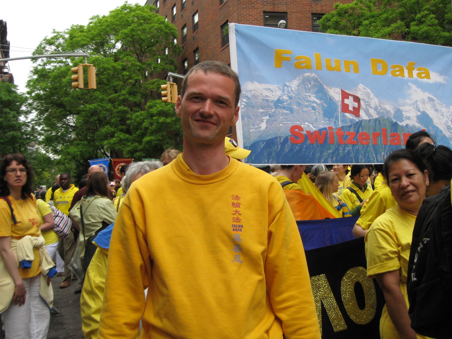 来自瑞士的尼科莱(Nikolai)从二零零六年初开始修炼法轮功,他从事服务行业工作,马上要进入大学学习德语和中文,因为他觉得能学好中文 对给中国人讲清法轮功真相非常重要。几年来,他经常利用假期飞到香港,并在那里逗留一段时间,为的就是给大陆游客讲法轮功的真相,最长的一次,他在香港呆了三个月,他说很庆幸老板肯让他请那么长的假。