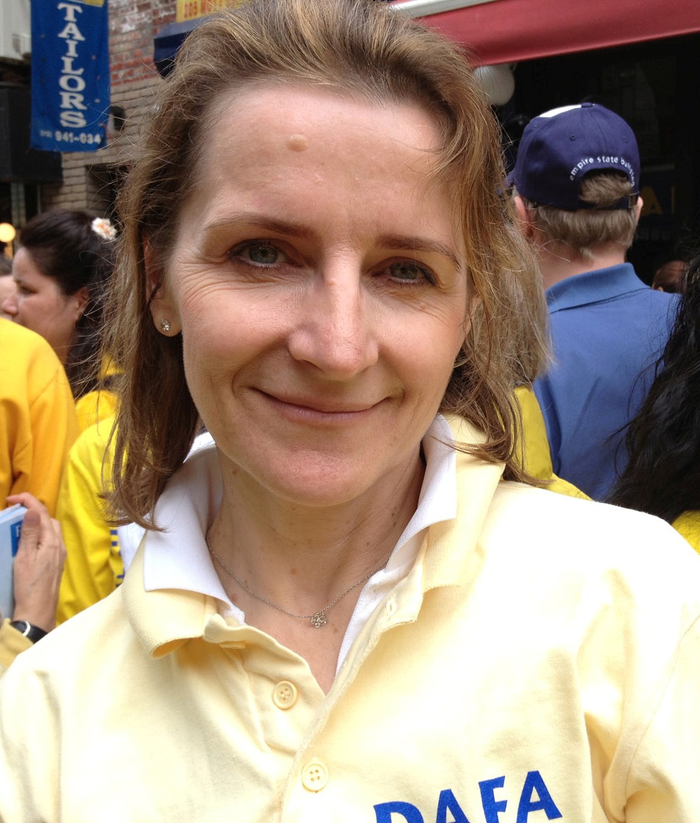 来自法国的金融分析师汉娜(Hanna)于二零零五年听闻法轮功,二零一一年正式开始修炼。炼功后,自己身心受益。她很高兴自己能参加纽约的法轮功大游行,“每次参加这样的活动我都非常激动,都会流泪。”她觉得通过这些活动,可以让人了解到在中国还在继续发生着对法轮大法的迫害。她说:“迫害应该结束。”