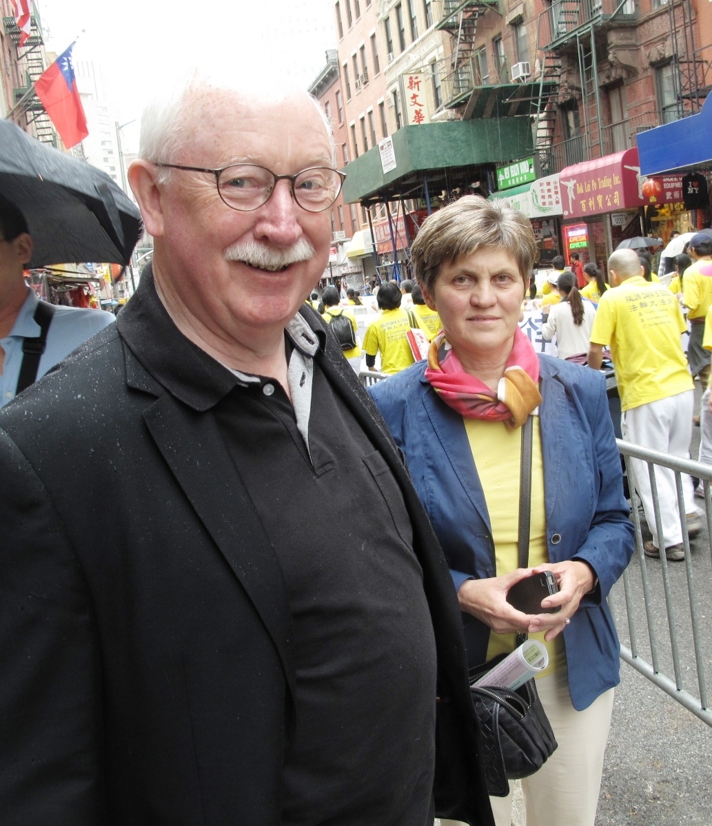 夫妇二人表示,这个游行“非常平和、信息量丰富,特别是关于中国的人权现状等等”。Manfred表示由于他的工作,他了解在中国发生的中共活摘器官的情况。