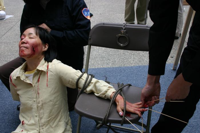![]() 酷刑演示:绑在铁椅子上电击 |