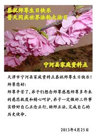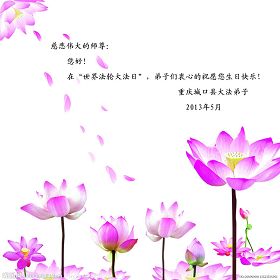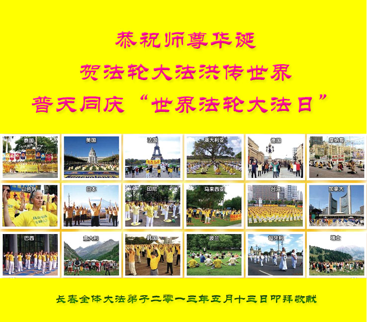 长春一新学员在二零一三年四月十八日写下诗一首,敬献法轮大法洪传世界二十一周年暨二零一三年“世界法轮大法日”。