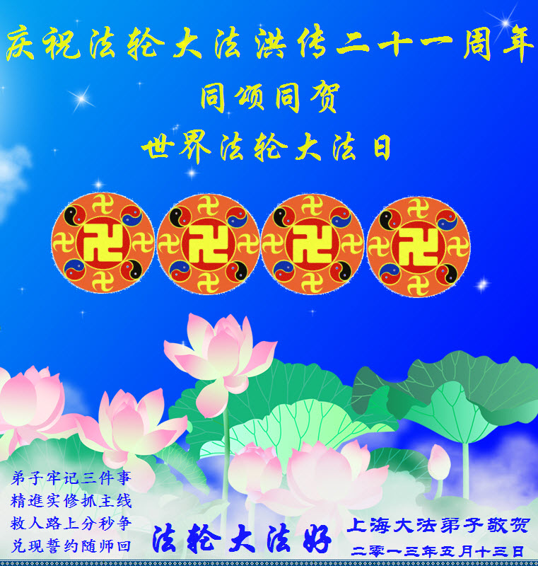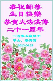 祝(法轮大法洪传)二十一周年快乐!