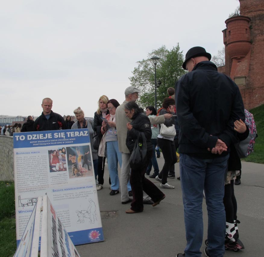 ![]() 市民游客观看法轮功真相展板 |