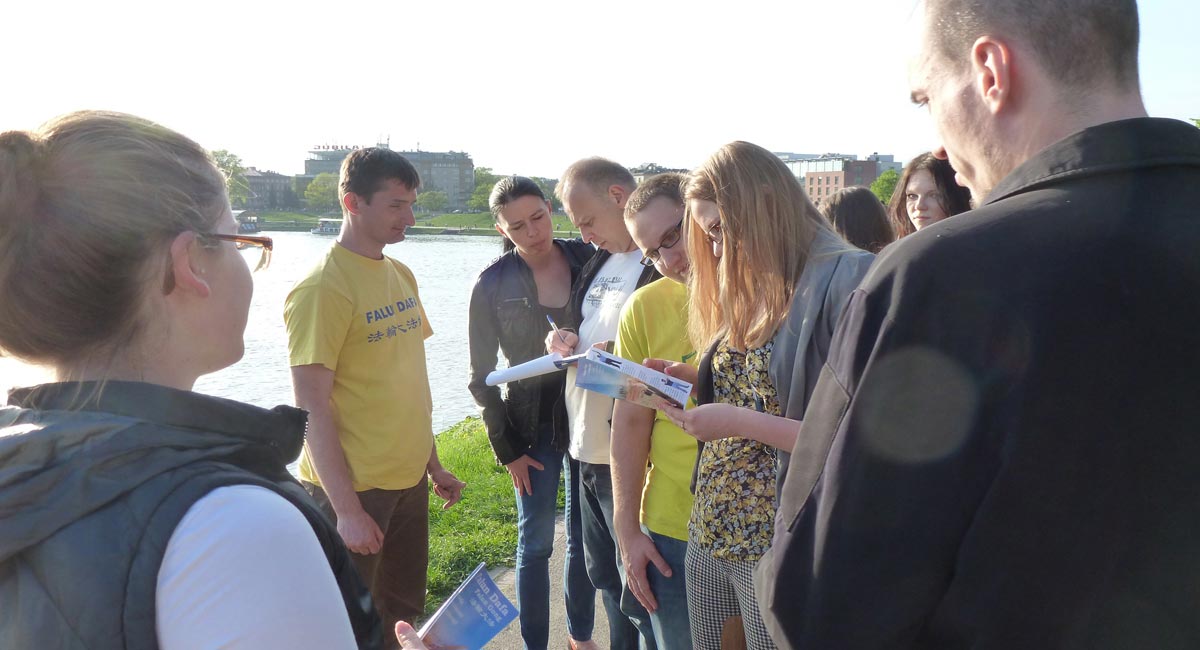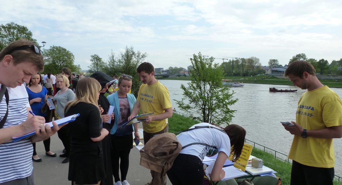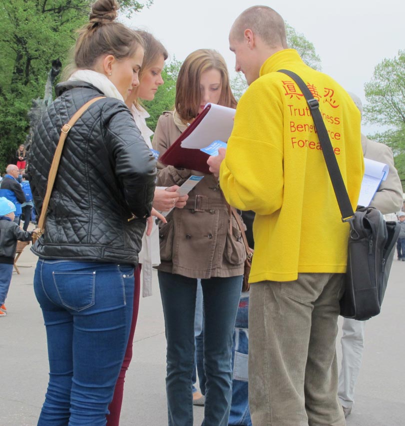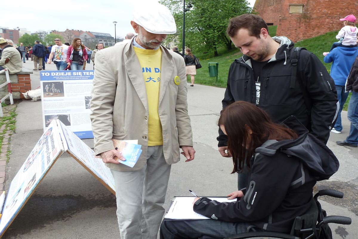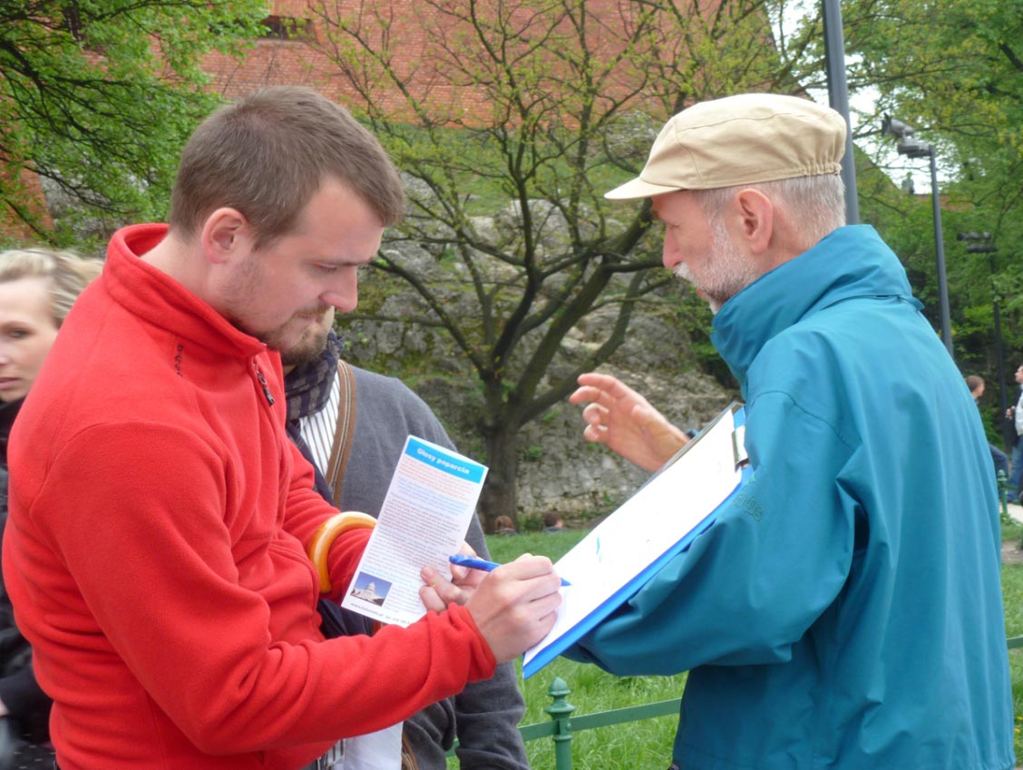 来自俄罗斯的一位先生说:“我在这里签名,不仅表达我反对这种迫害,也是表达我对法轮功的尊敬和敬佩,你们做得好,坚持住啊!”