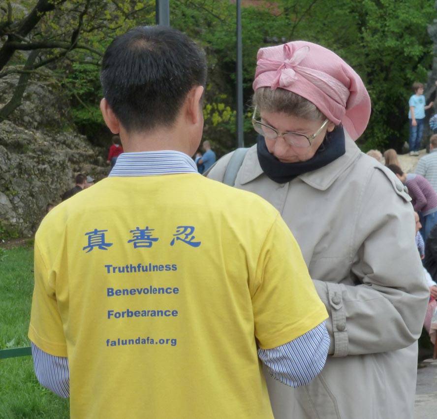 在几天中,不仅有大量游客参与征签,就连路边卖玩具的商贩,卖食品的老太太,载客的司机,坐轮椅的残疾人,路过的修女们都参与了征签。一位从芬兰来的姑娘,看过真相传单后,连续几天自愿帮助法轮功学员给游客散发传单,不论是在晴天朗日还是在阴云大雨中,她都和法轮功学员一样坚 持着,“真、善、忍”的美好信念让很多人受到感动。