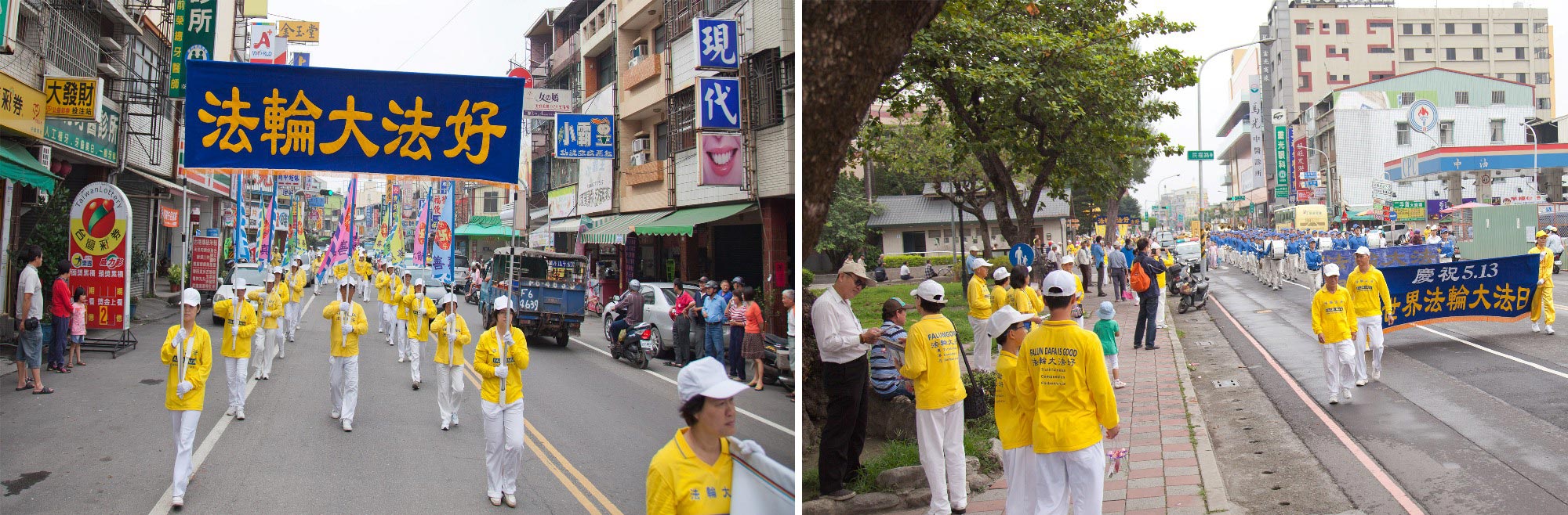 ![]() 台湾屏东大法弟子游行庆祝世界法轮大法日,活动吸引了众多民众放慢脚步,停下来了解真相,纯朴善良的乡民更夹道欢迎。 |