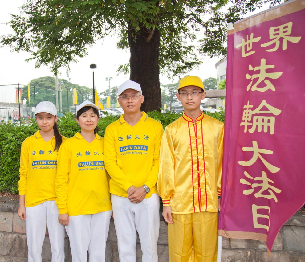 潮州第一银行退休主管的法轮功学员邱文治,整个家族都学炼法轮功,太太是天国乐团团员,吹奏长笛。学炼前邱文治为了银行业务应酬,抽烟喝酒吃槟榔,样样都会,修炼大法后一次炼抱轮时,感觉好像头顶冒烟,心里下定决心:“我不抽烟了”,结果这些坏习惯一下子通通没了,现在邱先生红光满面,慈眉善目。他的孩子也因修炼不变坏,而且课业、事业方面都很有成就。