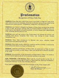 鉴于,密苏里州的法轮大法修炼者证实修炼法轮大法能减轻压力、增进健康、提高精神境界;并且