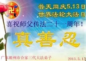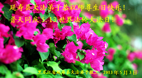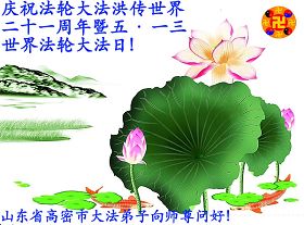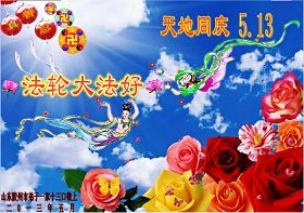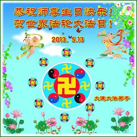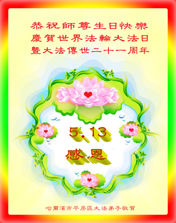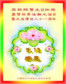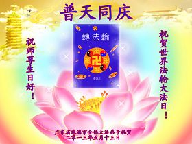非常荣幸在此祝贺法轮大法在世界一百多个国家洪传21周年!祝贺所有法轮大法修炼者!