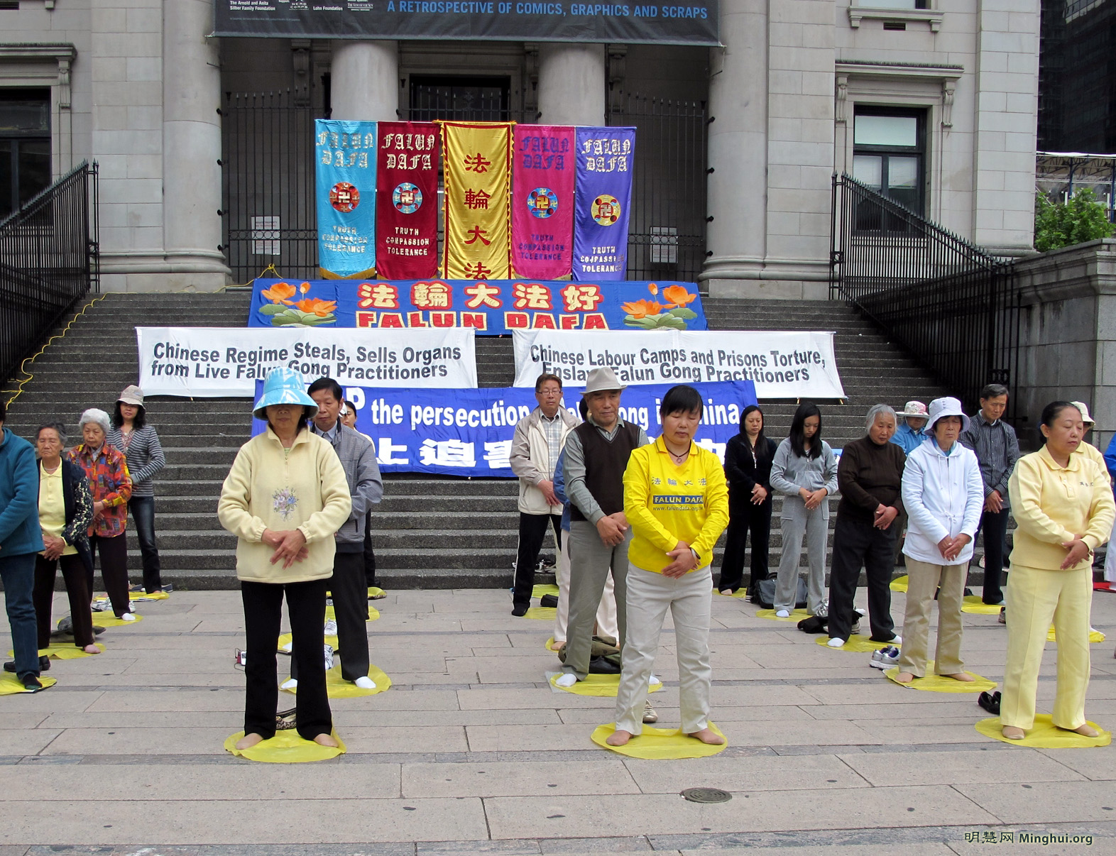 ![]() 温哥华法轮功学员在市中心艺术馆前集体炼功 |