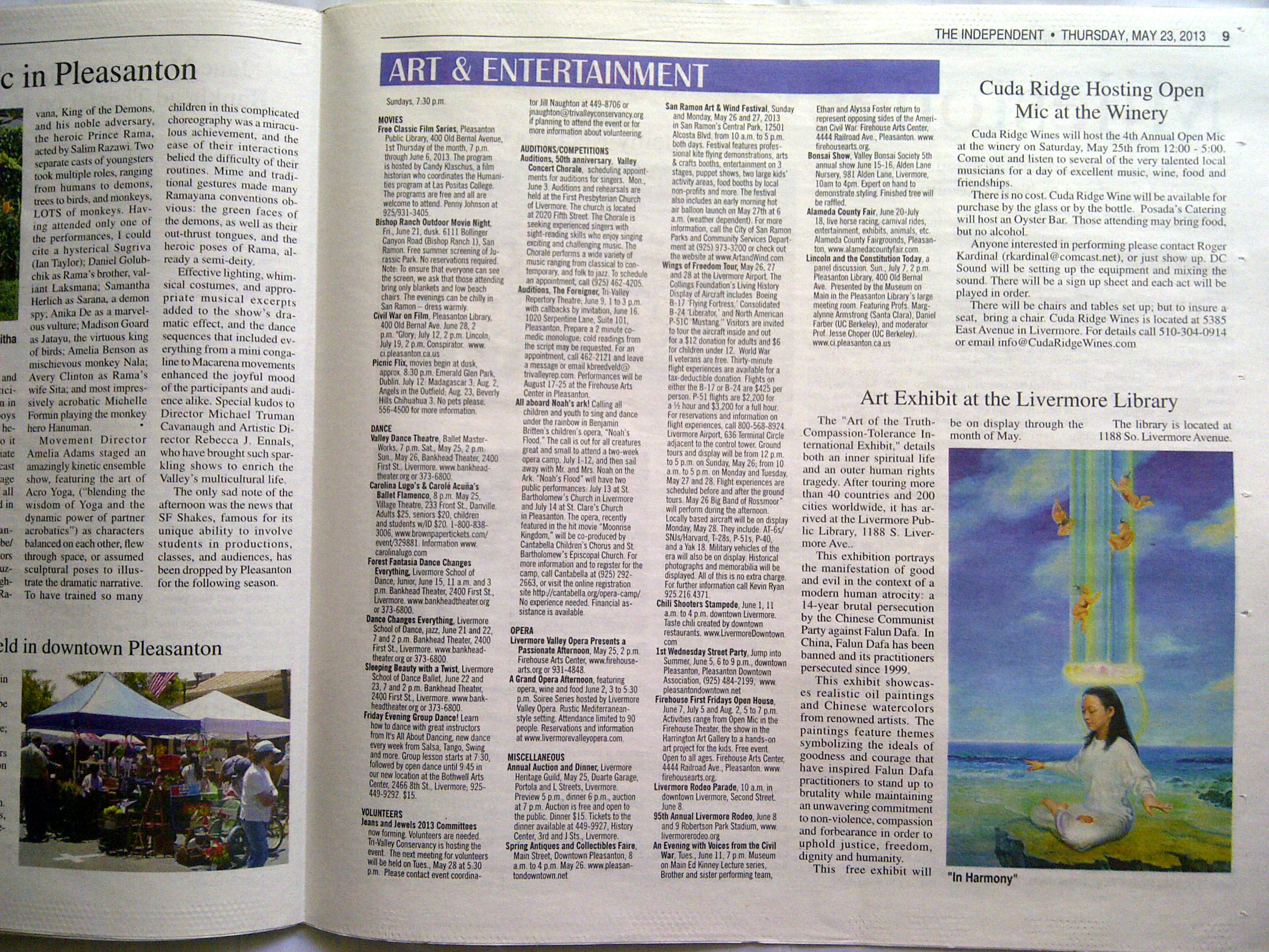 ![]() 利弗莫尔市当地报纸“The Independent”对真善忍美展的报道 |