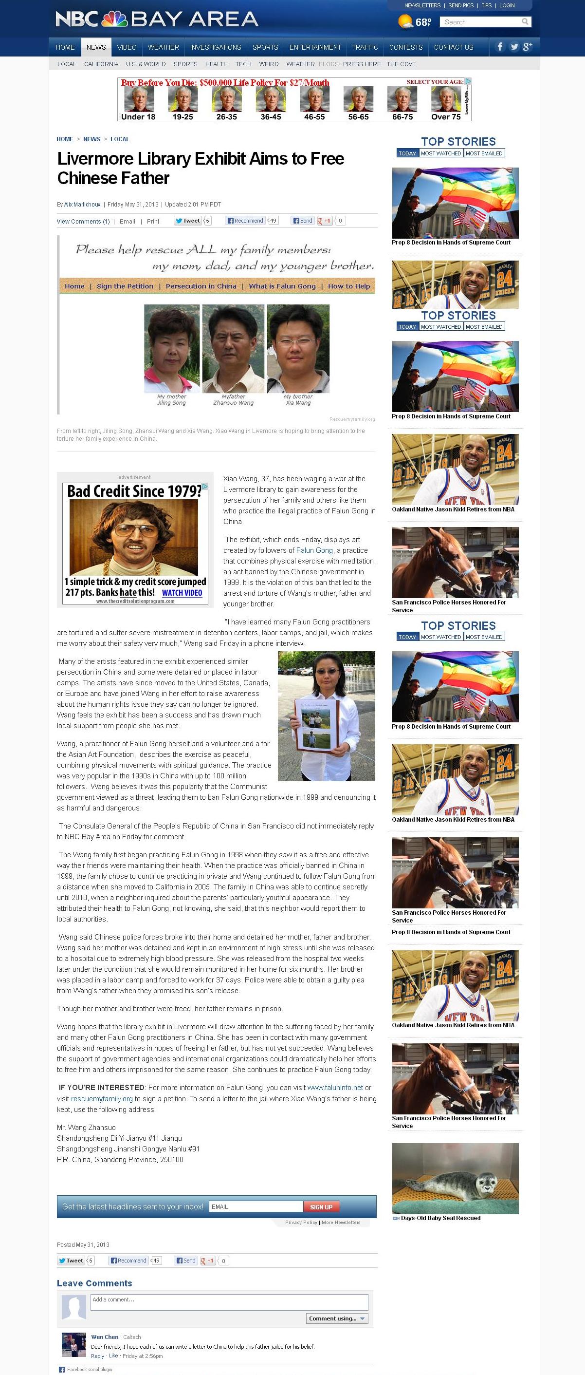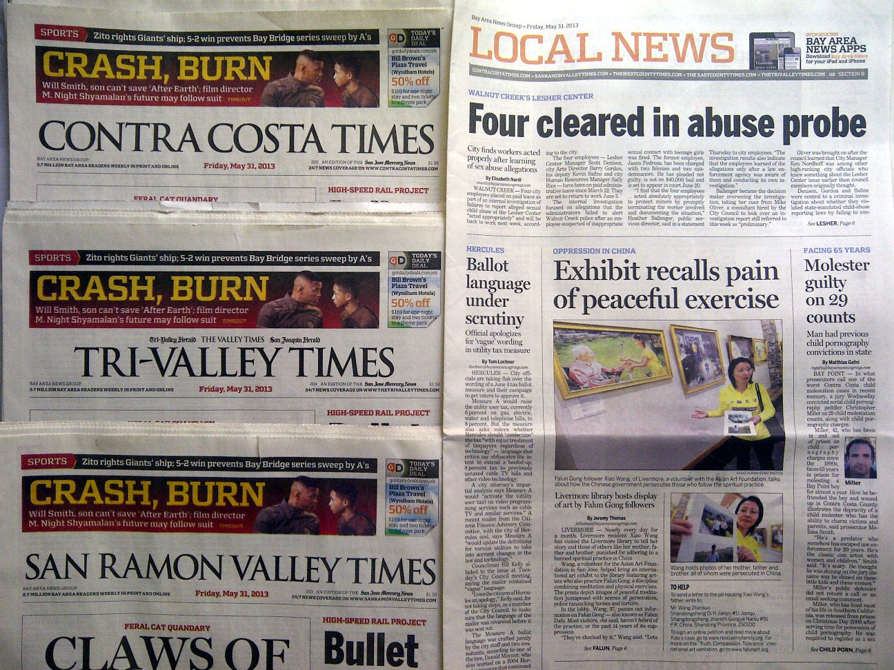 ![]() Bay Area News Group的多家报纸对真善忍美展和中国法轮功学员遭受的迫害进行了报道 |