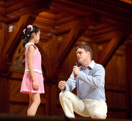 ![]() 二零零五年九月十八日,德鲁在哈佛大学圣德思剧院营救法轮功孤儿慈善义演上演唱《孩子,让我带你回家》(飞越风雨的和平鸽),令很多观众感动落泪。 |