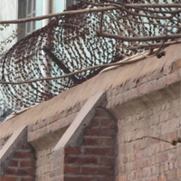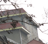 监区大院(即所谓“劳教管理区”),围墙砖体结构高达七、八米左右,电网高度、厚度都达半米左右。电西墙的电网特别密集,呈带锯齿的螺旋环状。南墙的电网也呈螺旋环状排列。电网的横截面呈圆形,直径约半米宽,要翻越这种圆溜溜、带弧度、有一定厚度、带锯齿的电网几乎是不可能的。