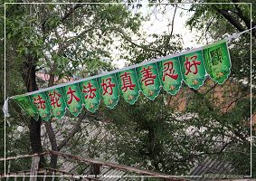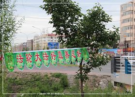 图片:东北某地庆祝世界法轮大法日条幅