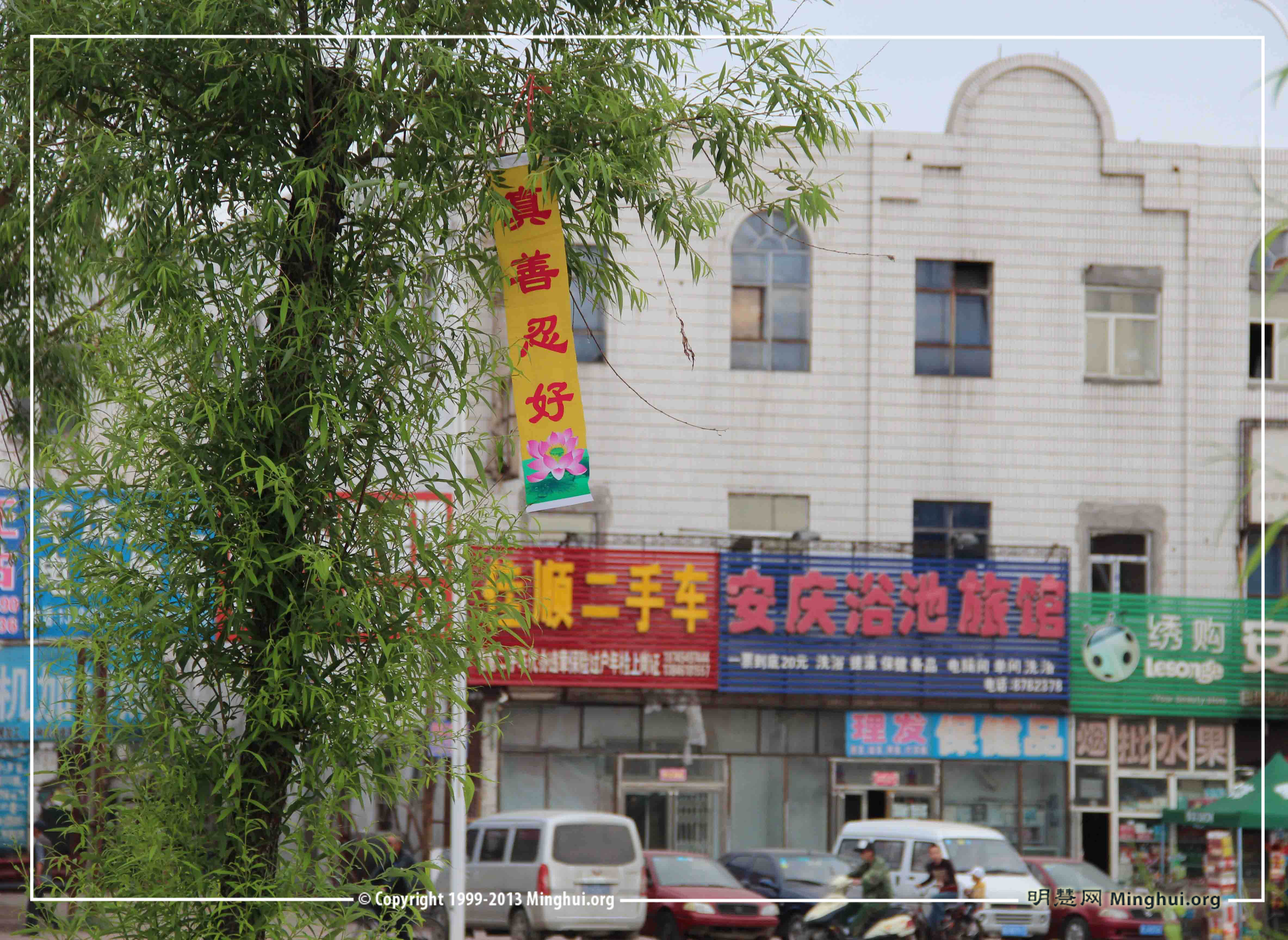 黑龙江鸡西大法弟子挂横幅欢庆“师尊生日暨513法轮大法日”