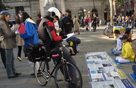 基于他们自己在英国呼吁人权的经历,卡尔、卡那、米迈特和阿尼尔马上就意识到中共的反人类罪,并对法轮功学员反迫害努力表示非常赞赏和支持,他们说:“在专制政权下,什么样的迫害都可能发生。” “你们这样做非常有意义。正义的事业就要义无反顾地去做。” “下雨算什么,与直接遭受酷刑和死亡不可比,我们在这里呼吁人权,没有生命危险,就更应该去做。”“这些严重侵犯人权的事情在这里的英国媒体却看不到,我们自己要继续努力。”