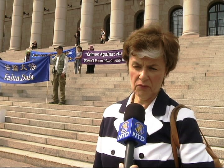 其中,芬兰国会议员帕洛涅米(Aila Paloniemi)在早晨进入议会之前详细聆听法轮功学员讲述“活摘器官”的真相,并在声援征签表上签了名。
