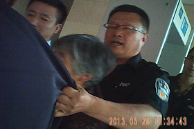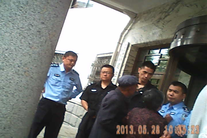 韩春龙的父母见儿子被折磨成如此惨状,法院又不让家属旁听,气得不顾一切的往里冲,那些法警竟然将两位七十多岁老人推倒在地,老人被家人扶起后继续往里冲,二十多个法警强行将两位老人拖走,非法拘禁一个半小时,直到开庭结束,才将两位老人放回。陈新野的父亲被十几个法警和公安从里面连拖带拽强行推搡到大门外,老人和他们说理,负责执勤任务的丹东市振兴分局又调来十多个公安增援,盯着老人虎视眈眈。