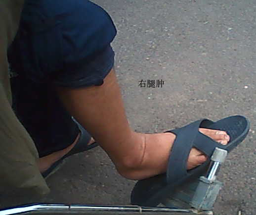 ![]() 韩春龙遭受毒打后右腿肿胀的照片 |