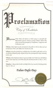 鉴于,达拉斯-福特沃斯地区法轮大法学员在五月十一日在布兰诺Russell Creek公园庆祝世界法轮大法日;
