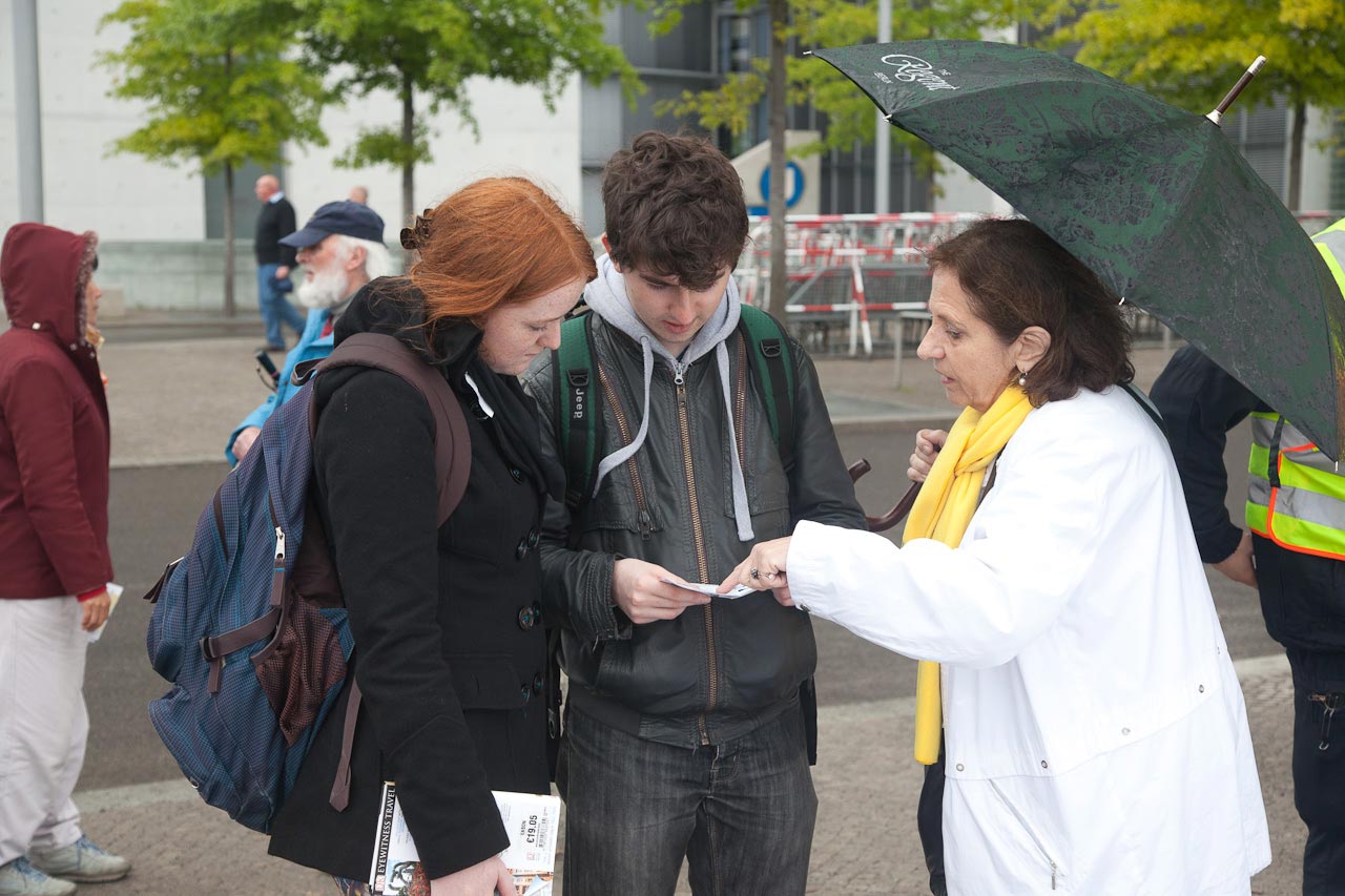 ![]() 德国总理府前,路人听法轮功学员讲述发生在中国的迫害详情 |