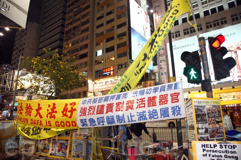 然而自四月中旬以来,食环署成立了一支“特遣队”,将矛头指向法轮功真相点,多次突袭、强行抢掠真相横幅与展板,在一些地区连尚未展示的展板也被强行没收,甚至威胁要对法轮功学员进行检控。