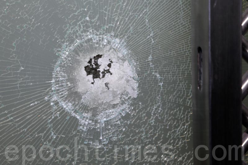 .纪.元;印刷厂玻璃大门'>被暴徒砸损的香港大.纪.元;印刷厂玻璃大门 |