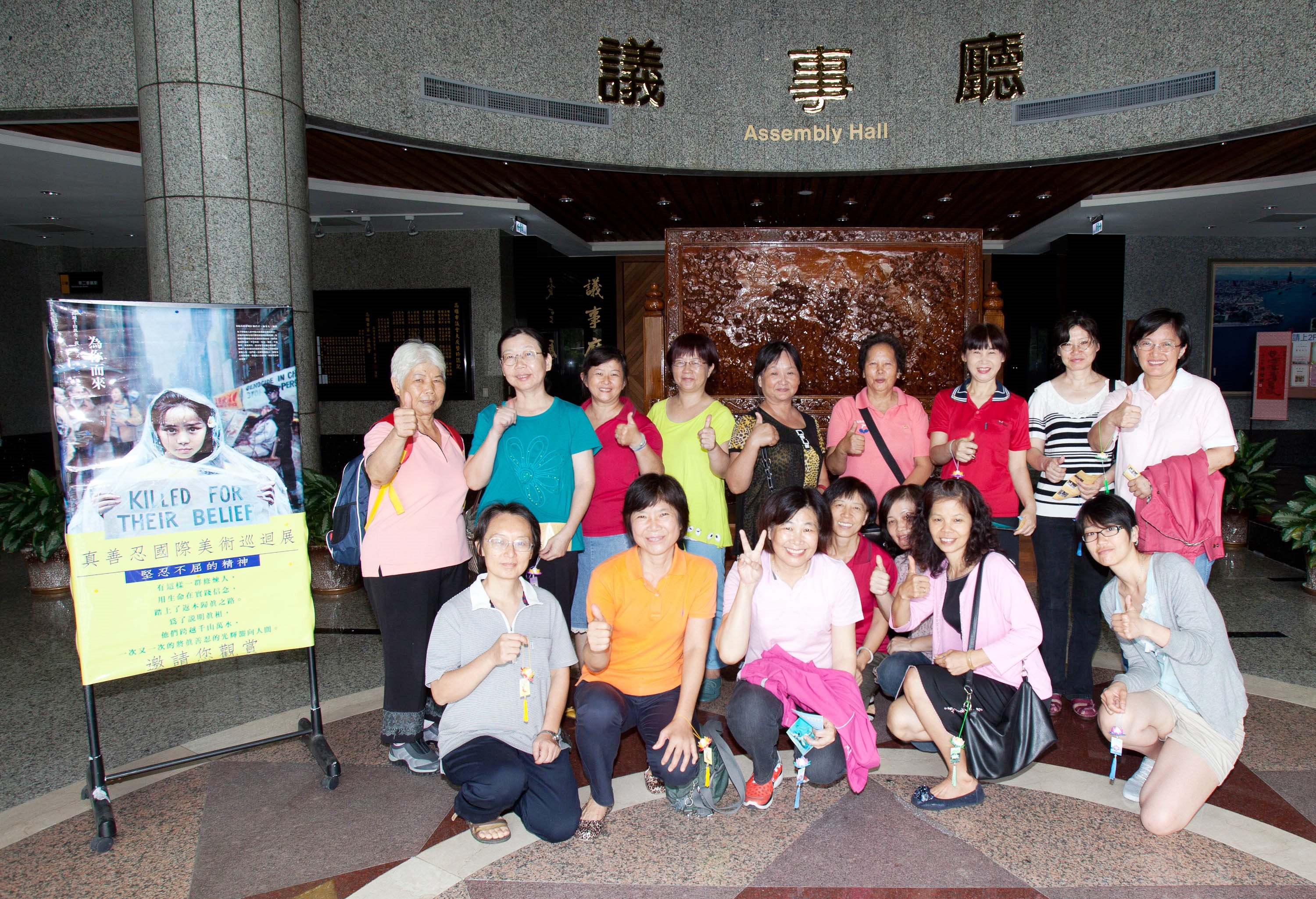 ![]() 图 4:市议会真善忍美展,凤山社区服务团团员也相邀前来参观美展,团员竖起大拇指说赞。 |