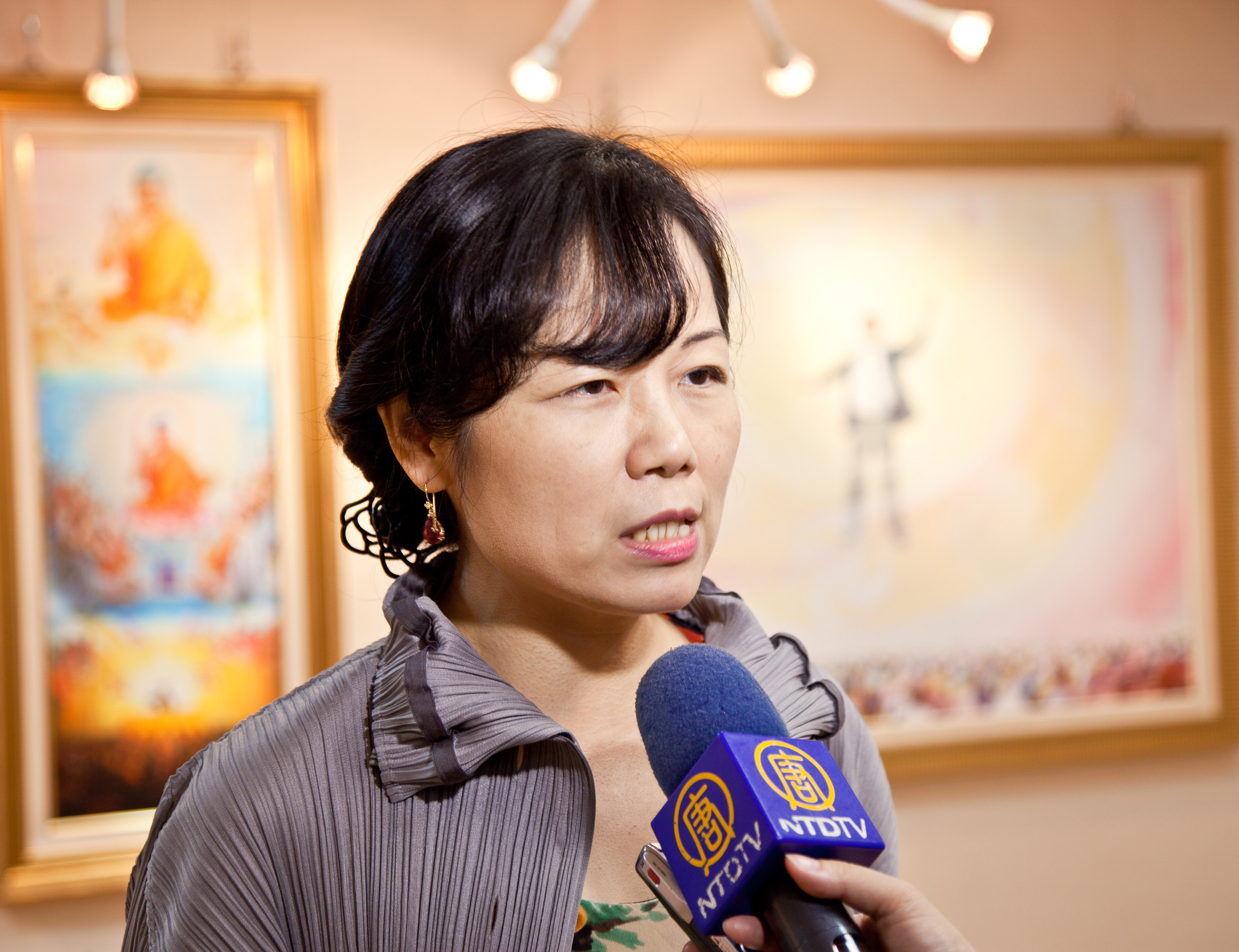 ![]() 图11:旅德油画家洪秀敏说,藉由美展让我们了解法轮功学员精神的所在 |