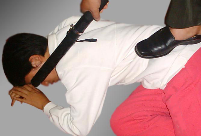他们没有出示任何证件,四个男的把我抬成大字型,从我丈夫和孩子面前,把我绑架走。当时,孩子才三岁多点,被他们吓的都不会哭了。