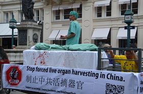 有四位游客经过真相展位,听说活摘器官,他们马上提出要签名反迫害。其中一位女士指着另一个同行说,这个是她兄弟,她把自己一个肾捐给了他,她很自豪能够帮助他,但在中国发生的对非自愿捐献者的活摘器官是应该遭到谴责的,她希望她的签名能够帮助法轮功学员。