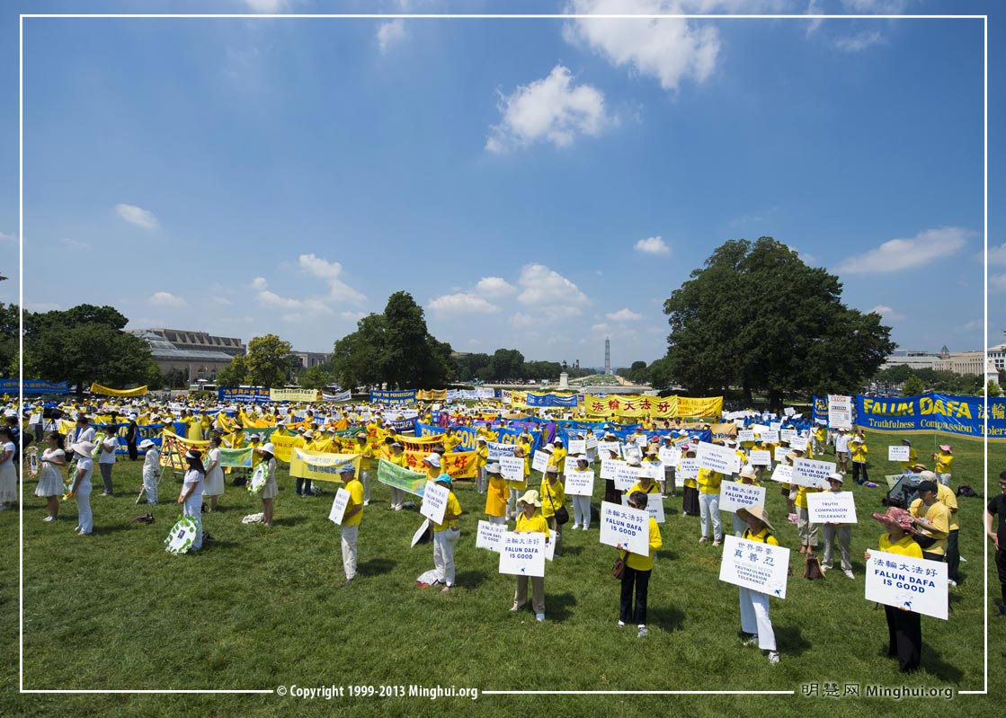 ![]() 图1、2:二零一三年七月十八日中午,法轮功学员在美国国会山西草坪集会,呼吁制止中共对法轮功长达十四年的残酷迫害。 |