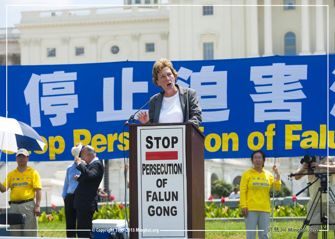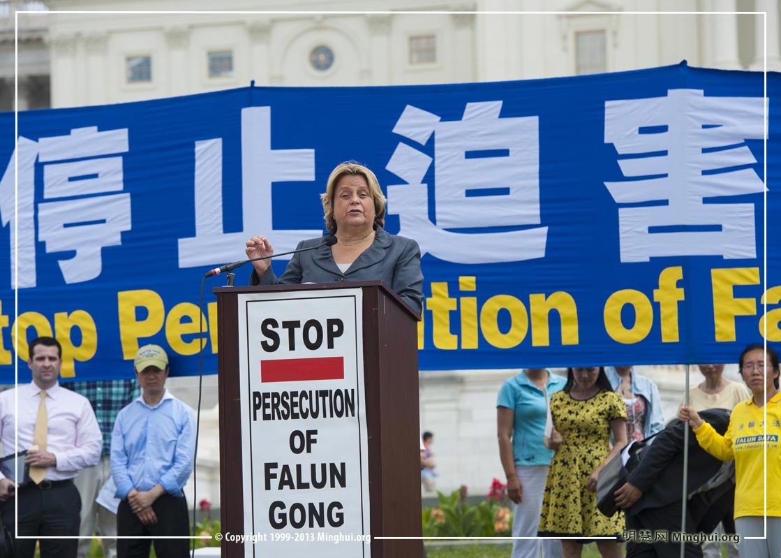 美国国会众议院外交委员会中东和北非小组主席、佛罗里达州共和党资深众议员伊丽娜·萝斯-莱赫蒂宁(Ileana Ros.Lehtinen)在集会上说:“法轮功学员被系统抓捕、折磨、被送往劳教所接受所谓的‘再教育’,被送往精神病医院洗脑,被摘取器官。自从二零零一年以来,大约六万五千名法轮功学员被谋杀,到今天为止,还有几十万法轮功学员被关在劳教所里面。这些和平的法轮功学员成为全球良心犯的最大群体。”