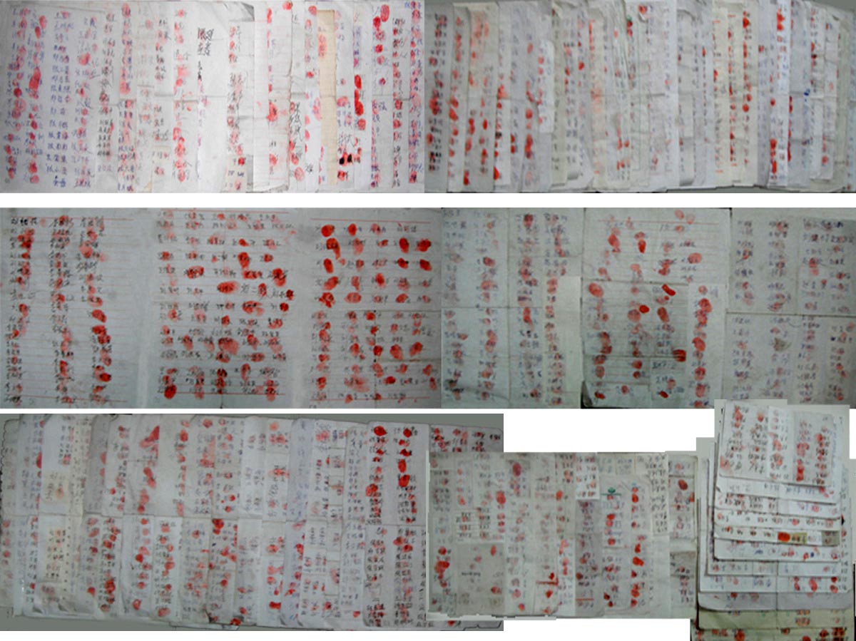 2013年3月15日,河北唐山市也出现了逾万人按红手印要求释放诚信商人、法轮功学员郑祥星。